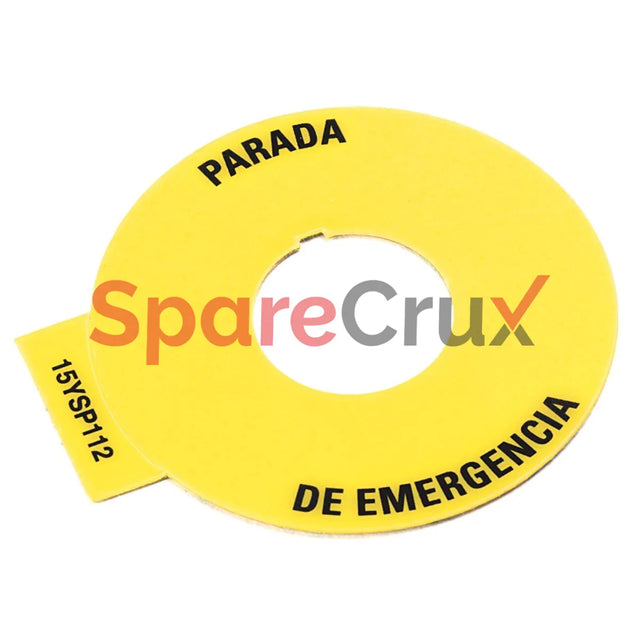 • Description: 60 mm Round Yellow Legend Plate with 'PARADA DE EMERGENCIA' Text