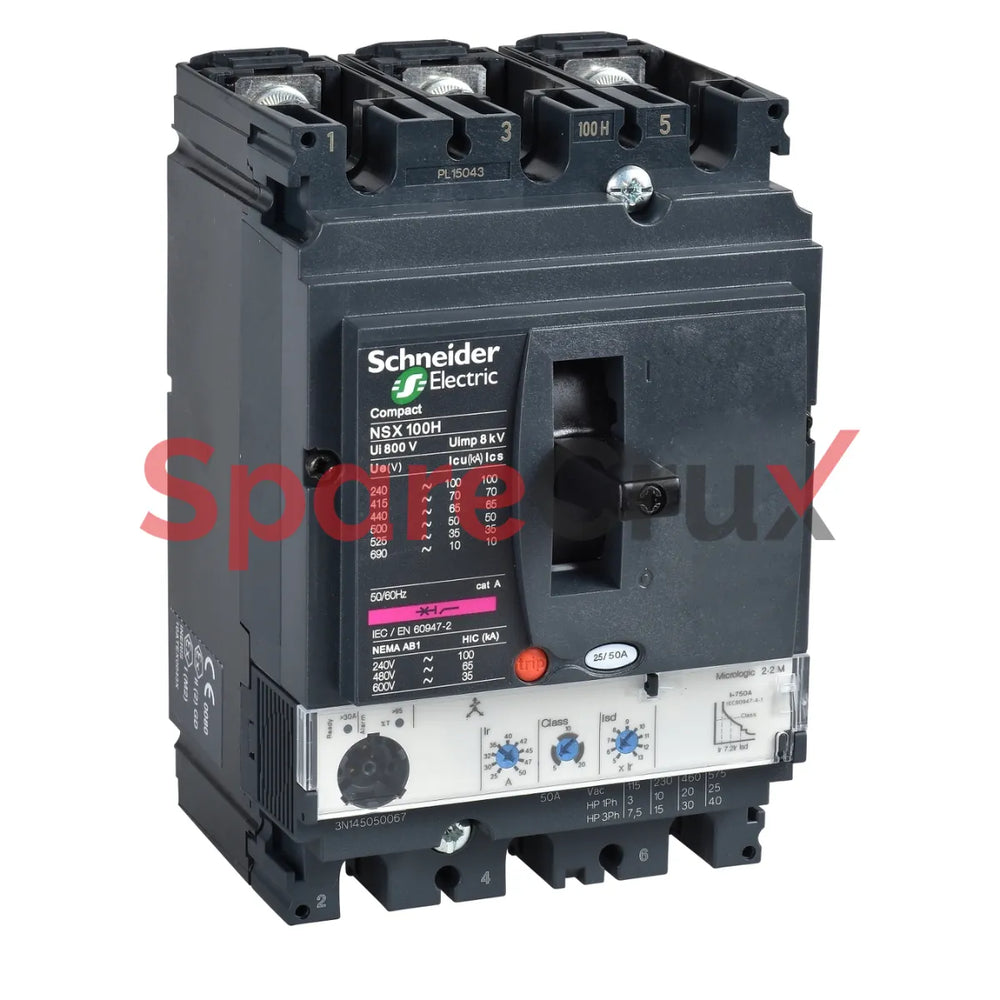 LV429832 | SCHNEIDER ELECTRIC | circuit breaker Compact NSX100N, 50 kA at 415 VAC, Micrologic 2.2 M trip unit 50 A, 3 poles 3d